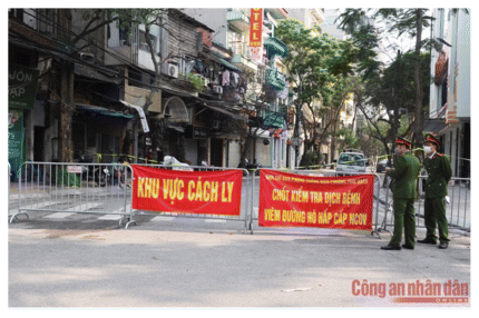 FIGURE 2 Lockdown at COVID-19’s infectious areas at the Truc Bach ward, Hanoi |