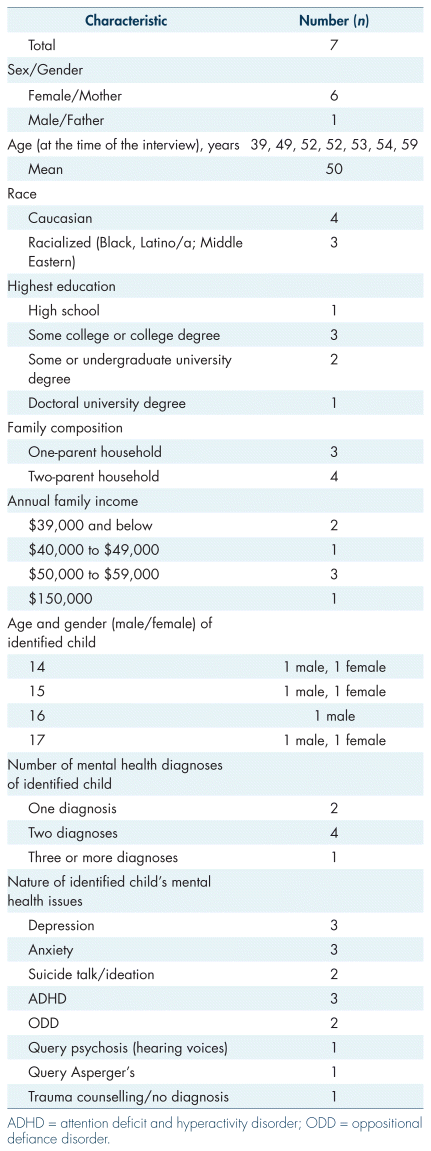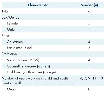 Purposive sampling was used to identify both the practitioner and caregiver participants. The criteria for inclusion of caregiver participants was being a caregiver with a child between 12 and 24 years old, nearing the end of their mental health treatment or who had used mental health services within the previous two years and who had had police involvement for a mental health concern. The criteria for inclusion of practitioner participants was being a mental health professional (i.e., social worker, child and youth worker, etc.) with a minimum of two years of frontline experience providing mental health support to children and youth 12 to 24 years old. Caregivers were given $65.00 honoraria, and practitioners a $20.00 gift card.