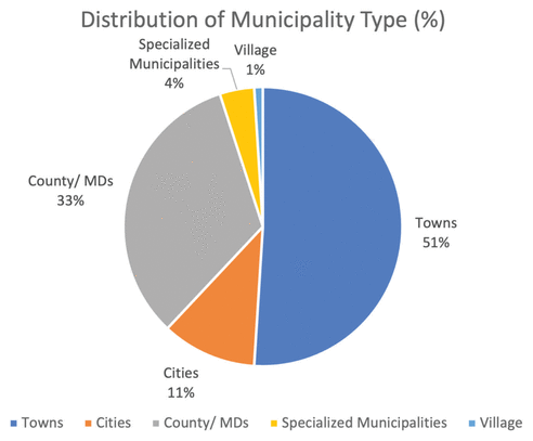 FIGURE 1 Distribution of municipality type. MD = county/municipal district. |