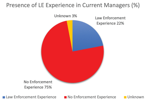 FIGURE 3 Presence of law enforcement experience in current managers. |