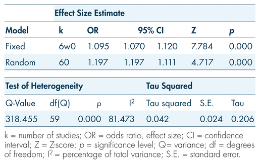 Key Words: Comprehensive meta-analysis, odds ratio, effect size