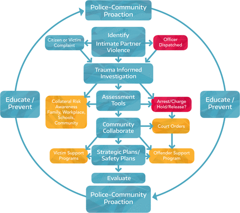 Key Words: Intimate partner violence (IPV) police proaction, contemporary community policing, trauma informed lens and response, safety planning, risk management, offender management, evidence-based, Safety and Security Web, think tank, crime prevention and reduction, round tables, Hub and Core, OMES, collaboration, National Framework (NF), shared language
