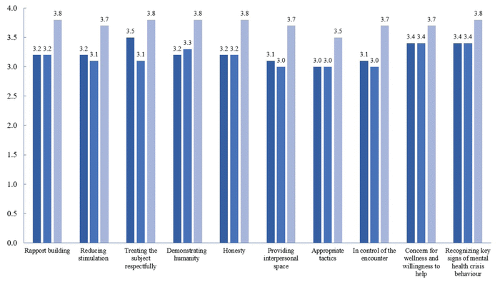 Given the frequency of interactions that occur between Canadian police officers and PMIs, there is a need for high-quality mental health training for officers to increase the likelihood of safe outcomes for all involved through the use of de-escalation strategies. Unfortunately, we currently know very little about the mental health or de-escalation training being offered by Canadian police services, and very few studies have been conducted which speak to the effectiveness of the training that is available (with some notable exceptions; e.g., see Krameddine et al., 2013). While only a first step in evaluating SV training, the current study adds to the small amount of Canadian research literature on this topic.