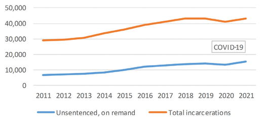 ■ From a legal perspective: Remand is particularly problematic in terms of human rights, procedural fairness, and due process, since some bail refusals end up in non-guilty verdicts or no additional prison time. This means that some individuals have spent traumatic time in jail for nothing.