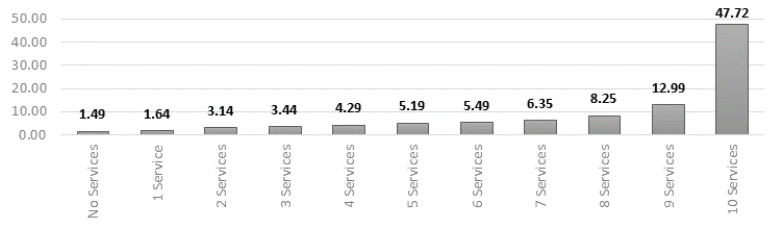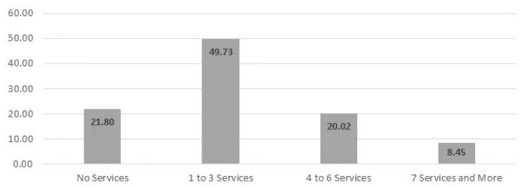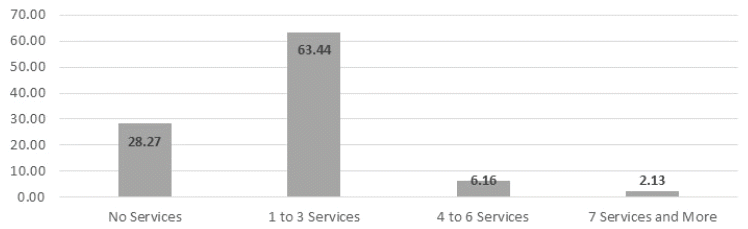 It should be noted that 1.5% of our sample indicated that their agency provided none of the services listed in the survey. About half of the sample (47.72%), indicated that their agency provided all 10 of the services listed (Figure 3).
