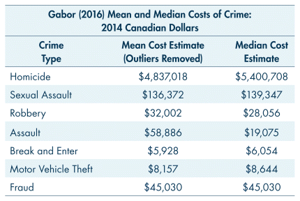 TABLE II Cost of crime estimates, mean and median costs of crime, 2014 Canadian Dollars (Gabor, 2016)