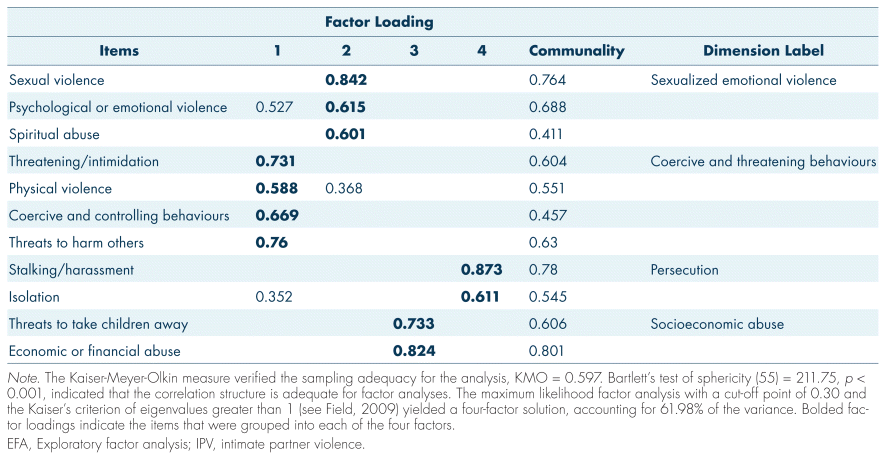 TABLE VI EFA of behaviours noted by judges when discussing IPV