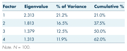 TABLE VII Rotated principle component analysis (PCA) eigenvalues, percentages of variance, and cumulative percentages for factors
