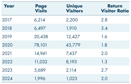 TABLE I Total page visits per year from 2017 to July 2024