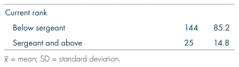 In total, 590 officers received the survey; 169 (28.6%) were sufficiently completed to be included in the present analyses. Although relatively small, our sample size is similar to recent studies of officer experiences and attitudes (Carr & Maxwell, 2018; Kääriäinen & Sirén, 2012). In terms of public response, 362 community members (excluding anyone currently employed in policing) completed the community survey. Of these, 285 (78.7%) drawn from the same five counties represented by police departments were included in the present analysis. Out of concern for officer participation rates, we collected limited demographic data on police respondents to maintain assurances of anonymity (Table I). Human subjects’ research approval was obtained from the Stockton University Institutional Review Board (IRB) (#2019.042).