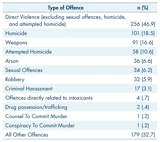 TABLE II Distribution of index offences for Alberta’s NCR population
