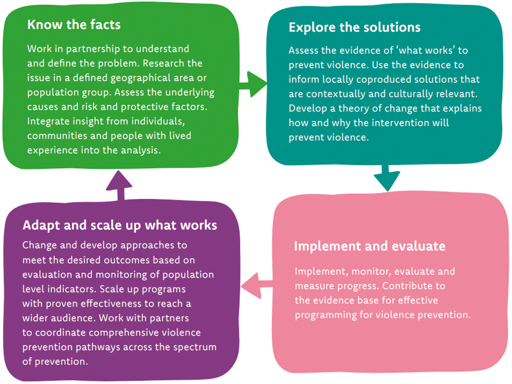 FIGURE 1 The four stages of a public health approach to violence prevention (Snowdon et al., 2023). Adapted from the World Health Organization’s four-step model for implementing a public health approach to violence prevention, this model reflects the views of stakeholders in Wales and the developments in knowledge about the practical implementation of violence prevention efforts. | ||